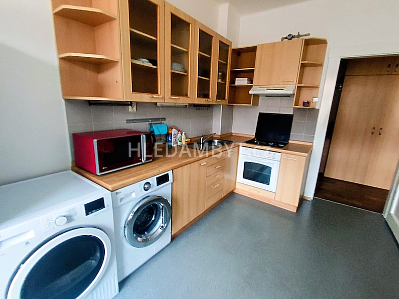 Pronájem bytu Praha 3 Žižkov je 2+kk ve 3 - posledním patře cihlového domu bez výtahu. Orientace západní směr, výhled do klidného vnitrobloku. MHD: 5 minut metro Želivského. Zařízení: kuchyňská linka, vestavěná varná deska a trouba, lednice, mikrovlnka, postel, sedačka, židle, komoda, šatní skříň, pračka se sušičkou. Koupelna vybavena vanou, toaleta samostatně. Na podlaze dlažba, parkety, pvc. Součástí bytu je komora, sklep 3,5 m2 v suterénu domu.