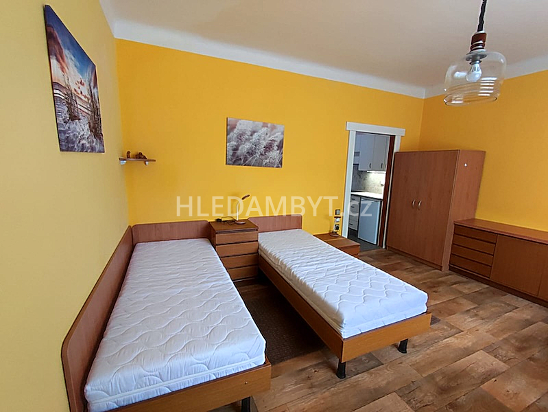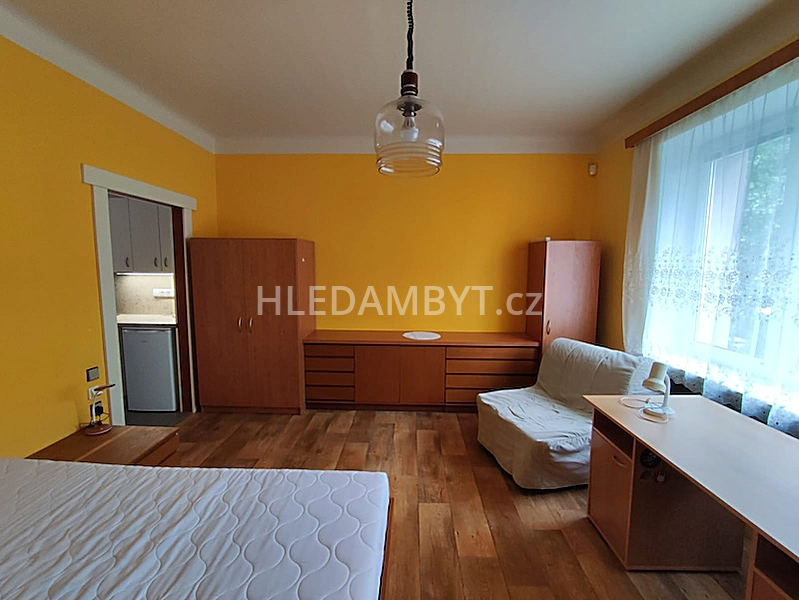 Pronájem samostatného bytu ve velice dobrém stavu, který Vám tímto nabízíme bude k nastěhování od 1. března a to dlouhodobě. Jedná se o byt ve zvýšeném přízemí rodinné vily. Okna orientována na východní a jižní stranu s výhledem do klidné ulice a zástavby. Je zde kuchyňská linka, sklokeramická varná deska s vestavnou troubou, lednice, mikrovlnná trouba, jídelní stůl, židle, 2 x postel, PC stůl, šatní skříň, komoda, noční stolek. Plastová okna se žaluziemi. Na podlahách dlažba, PVC a plovoucí. Ústřední vytápění. Koupelna zděná se sprchovým koutem a WC dohromady. Pračka a sušička sdílená. Možnost využití venkovní terasy k posezení. Vhodní pro 1 osobu. MHD: 20 minut na metro Petřiny. Internet již v ceně.